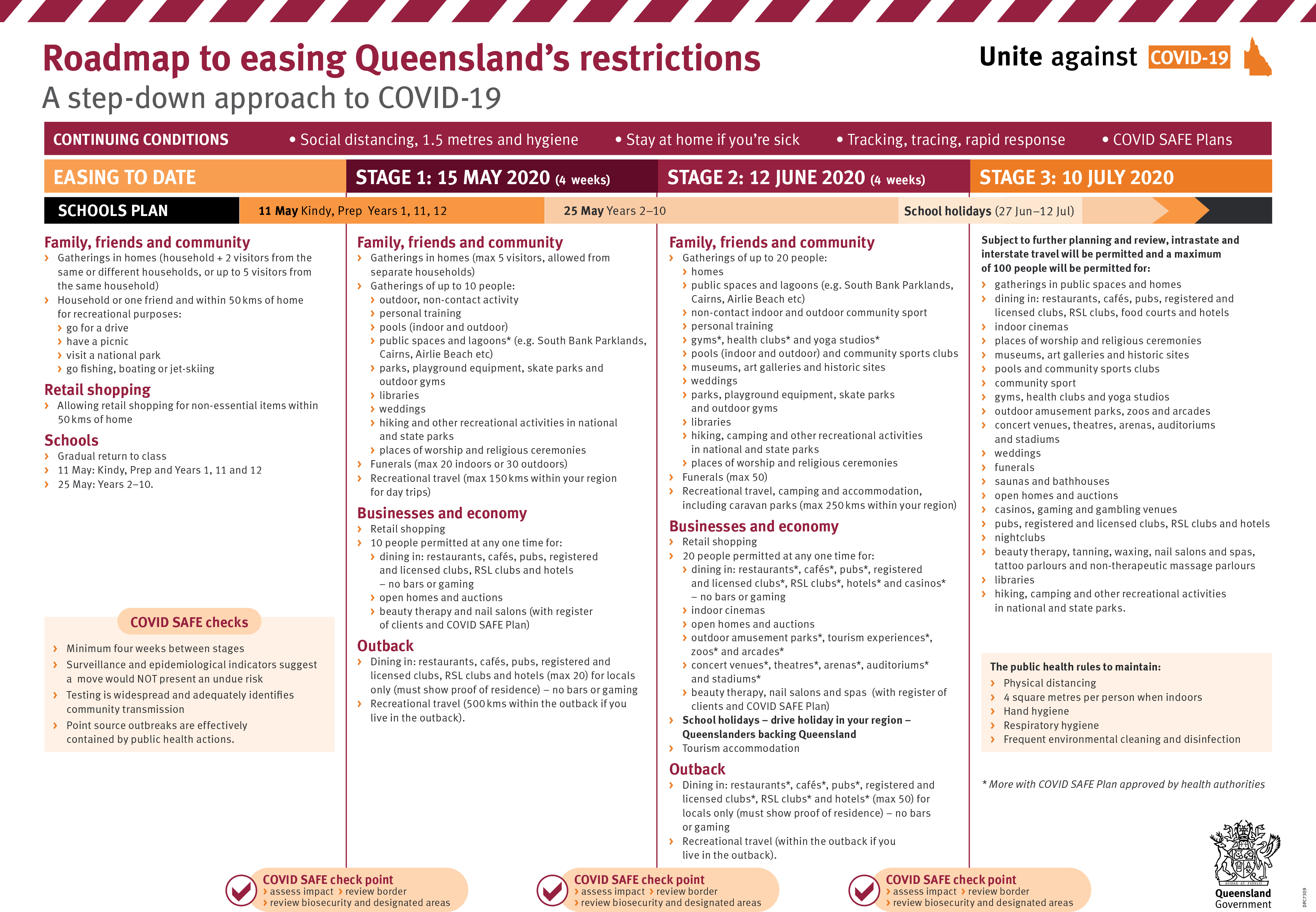 View Queenslands Roadmap to easing restrictions May - July here.